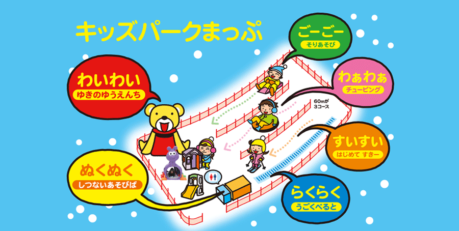 幼児や小学生、スキーデビューしたての小さな子供さんがいるご家族におすすめのキッズパーク!