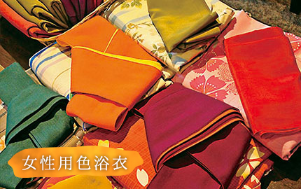 ろあんでは滞在中、館内でも皆さんに心底リラックスして頂くための工夫も行っております。例えば、通常の浴衣だけでなく、作務衣や選べるオシャレ色浴衣も用意してあります。