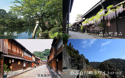 白山郷は日本列島のど真ん中の様な場所に位置していますので、全国各地からお越しになるにも都合がよく、小松空港から車で1時間ほど、北陸新幹線も開通した金沢駅からも1時間ほどと行き帰りのアクセスも事欠きません。白山の大自然や歴史文化の探索はもちろん、白山郷への行き帰りの道中、これらの観光地に立ち寄るのも良いでしょう。