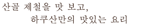 본 시설에서는, 계절별 재료를 즐길 수 있도록 다양한 요리 플랜을 준비하고 있습니다. 봄에는 여러가지 산나물, 여름에는 바베큐 계획, 가을에는 버섯들, 겨울에는 멧돼지와 곰의 전골 플랜 등, 제철의 맛을 즐기실 수 있습니다.